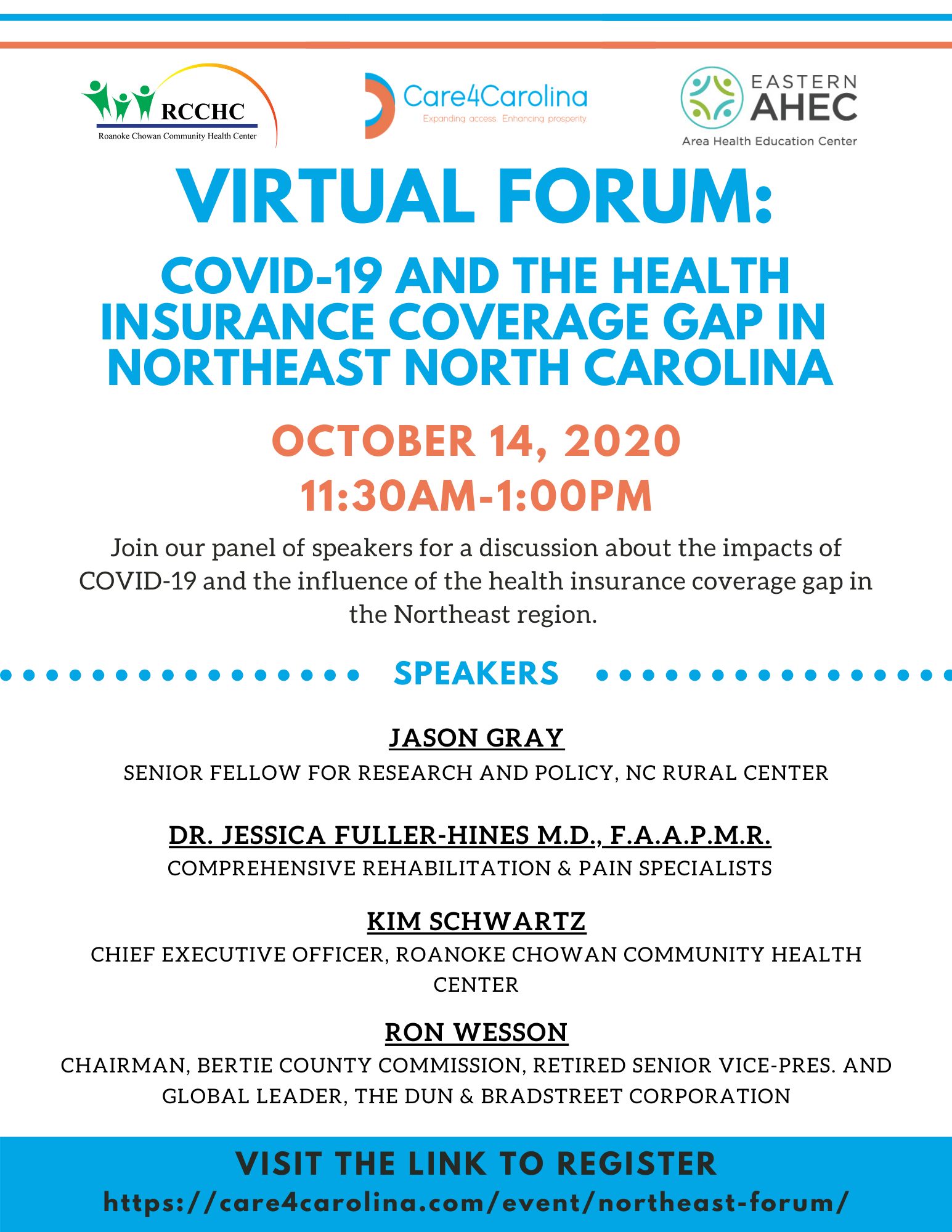 Care4Carolina is proud to co-host a virtual forum for Northeast North Carolina with the Roanoke Chowan Community Health Center and Eastern AHEC.