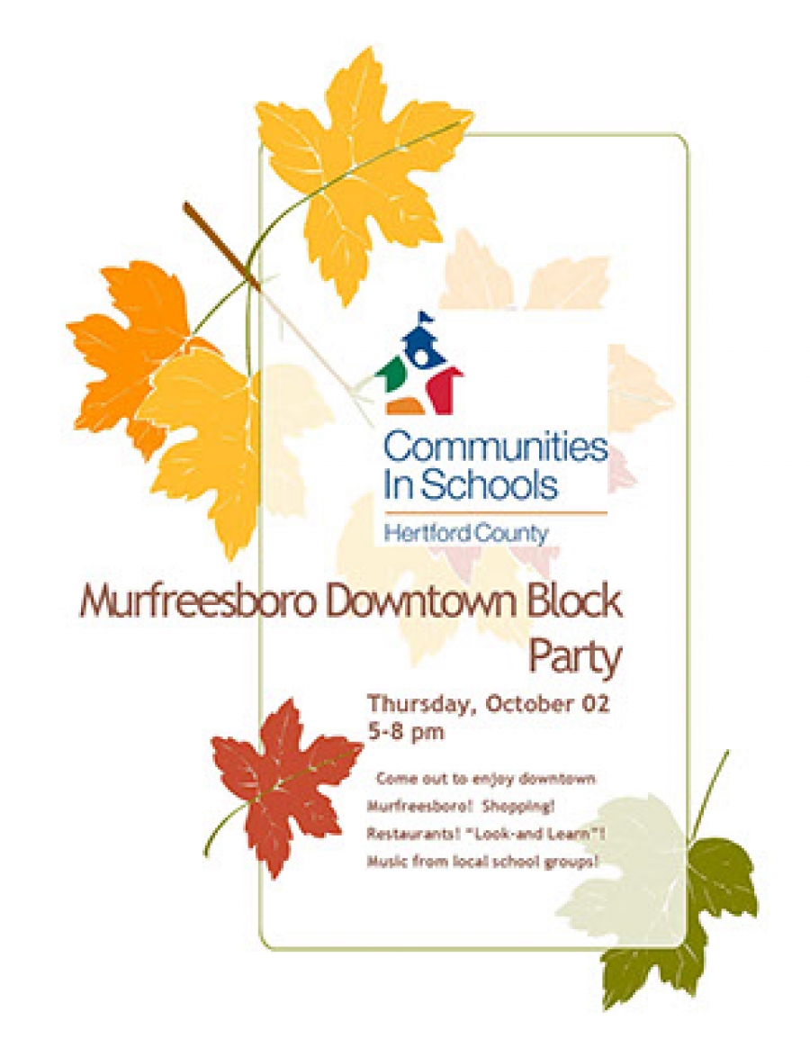 For more information about the Murfreesboro Downtown Block Party or Communities in Schools of Hertford County, please email